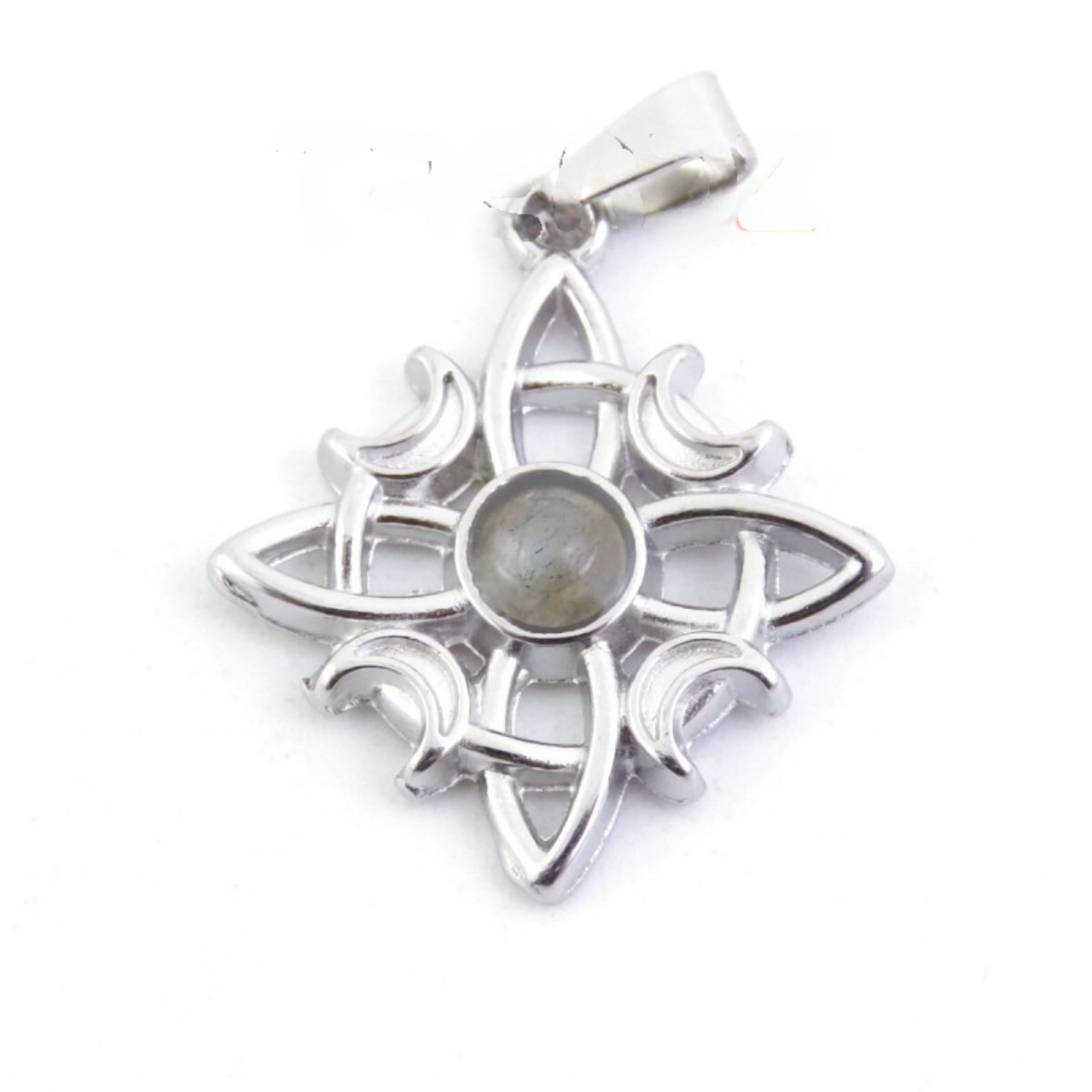 Colgante Nudo de Bruja con Labradorita de 24mm.Colgante de acero inoxidable de alta calidad y labradorita natural.