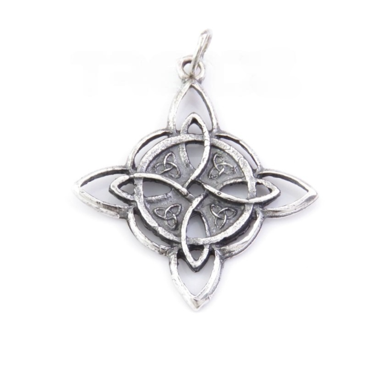 Colgante en plata de ley 925 Nudo de Brujas Doble y 4 Triquetas.. Terminación impecable.