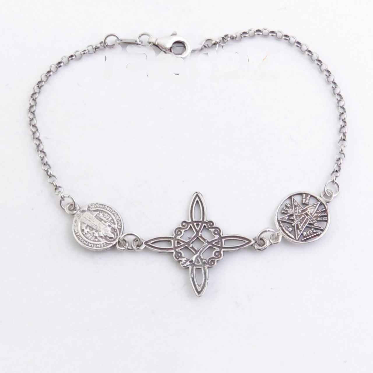 Pulsera de Triple pprotección, con Tetragramaton, Nudo de Brujas y Medalla de San Benito. (Incluye Ritual de Activación Personal)