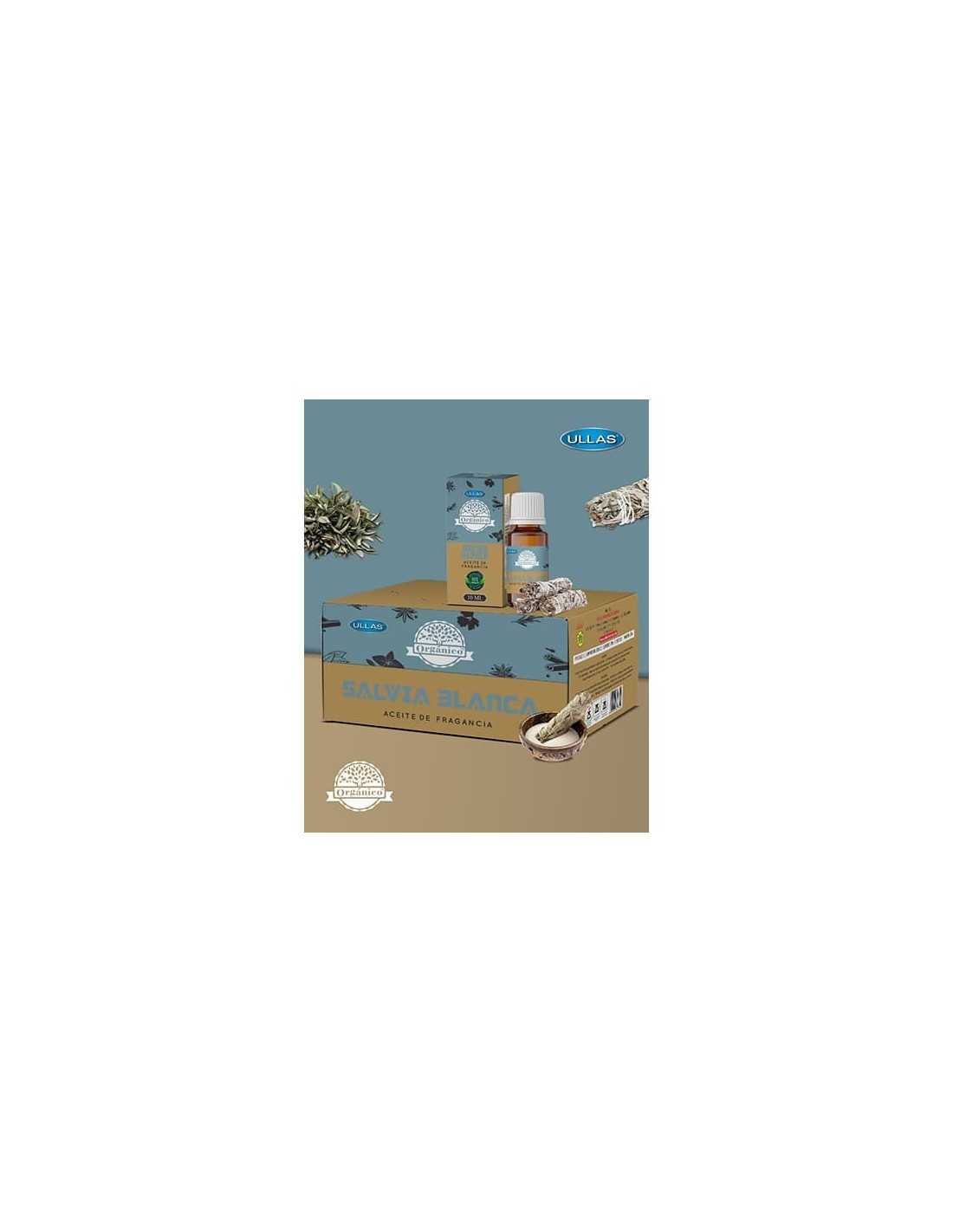Aceite aromático de salvia blanca Ullas, para difusores de aromas y esencias aromaticas con grandes propiedades y beneficios al quemarse en humidificador o quemador de aceite.