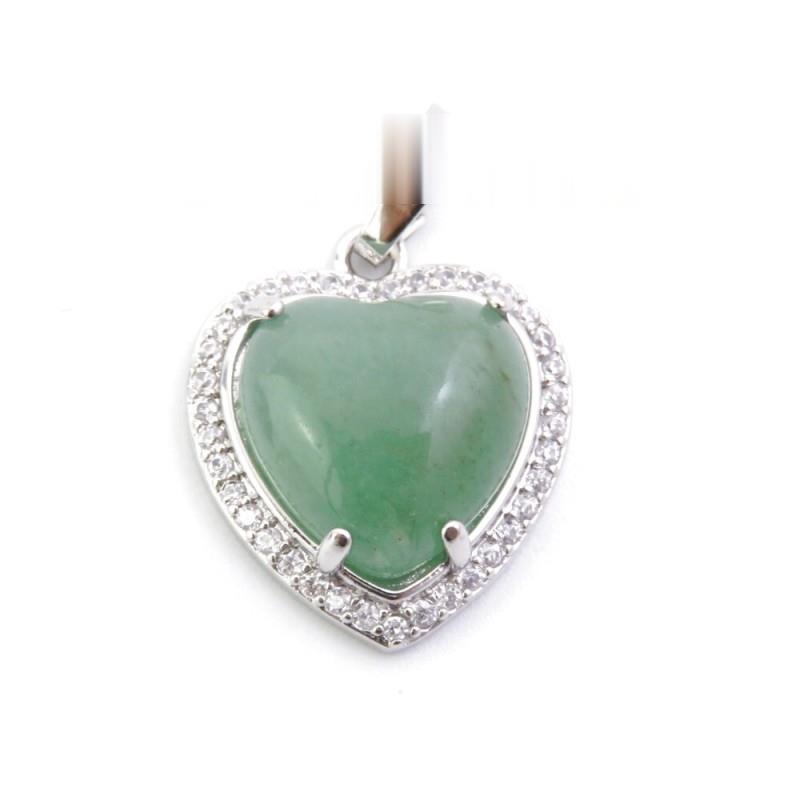 Colgante de 22 x 20mm en Metal con Circonitas en Forma de Corazón de Aventurina