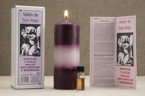 Velon esotérico 15 x 6 cm. 3 días de combustión aproximadamente. Petición a San Alejo para que aleje las malas influencias y los enemigos.